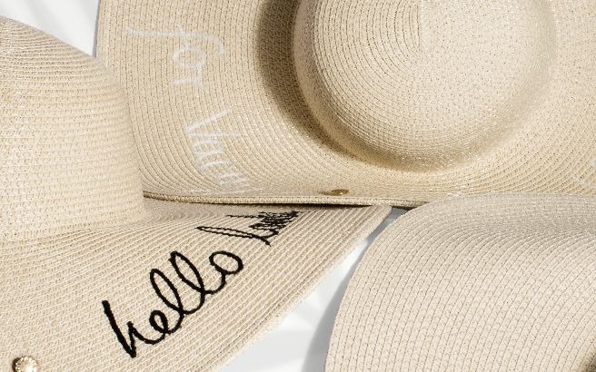 Die Hüte sind weich und haben eine natürlich, beige Strohfarbe. Mit hübschen Bestickungen vollendet, sind sie das Must-Have-Accessoire in dieser Saison.