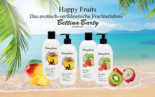 Tauchen Sie ein in die Pflegewelt von Bettina Barty! Luxuriöse Parfümierungen von zart-frisch bis exotisch-pudrig verwöhnen Ihre Sinne, hochwertige Wirkstoffe pflegen Ihre Haut. Mit unseren Kosmetikprodukten und Düften lassen Sie den Alltag hinter sich! BETTINA BARTY steht für erschwingliche Haut- und Körperpflege des täglichen Bedarfs. Die Produkte stehen durch eine intensive Parfümierung für ein ganz besonderes Duft- und Qualitätserlebnis.