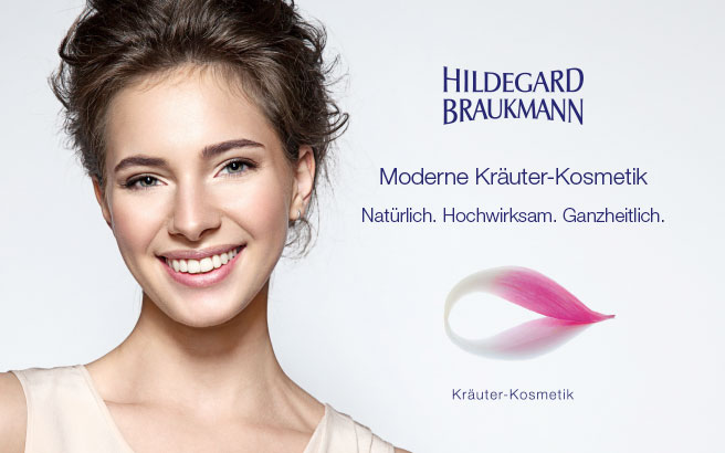 High Tech Kräuter-Kosmetik mit Tradition. Die Kraft der Natur für eine sanfte, wirksame Kosmetik nutzen - das gehört für die Marke HILDEGARD BRAUKMANN seit über 50 Jahren zum Produktkonzept. Einzigartiges gewachsenes Wissen über pflanzliche Wirkstoffe und Vitamine verbunden mit den neuesten Erkenntnissen der dermatologischen Forschung bilden die unverzichtbare Basis für höchste Produktqualität und innovative Rezepturen. HILDEGARD BRAUKMANN Produkte sind besonders hautverträglich und abgestimmt auf individuelle Hautzustände in verschiedenen Lebensphasen.